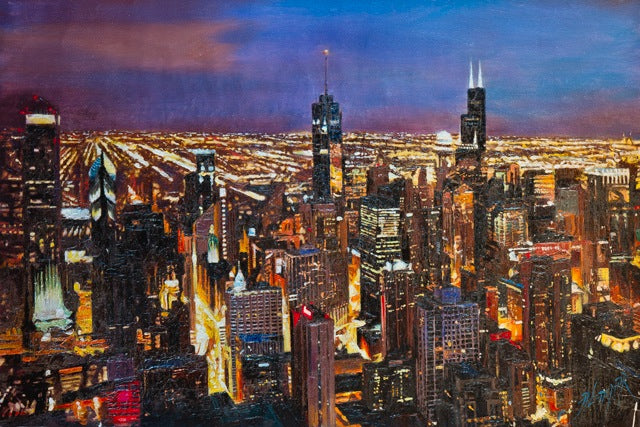 Palette Knife Oil Painting on Canvas of "Chicago" 24"x36"